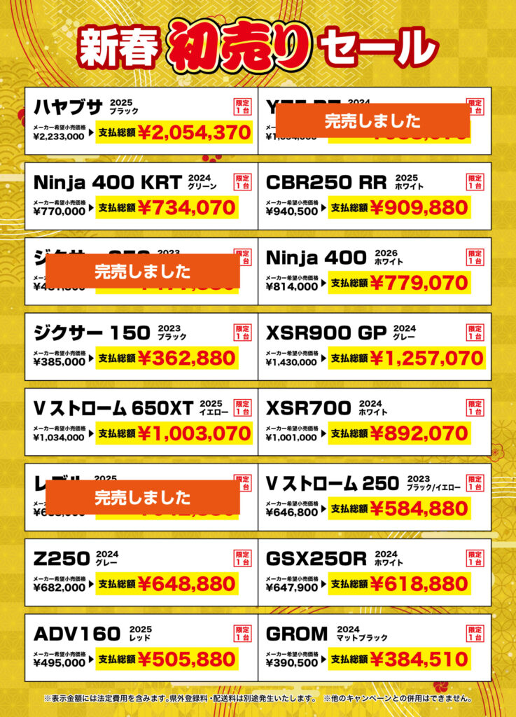 2026年1月4日より初売りセールを開催します!
