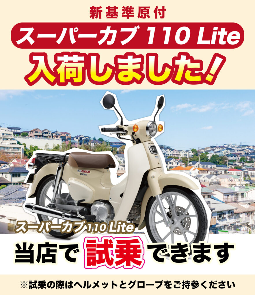 Dio110liteに続き、新基準原付スーパーカブ110lite展示車兼試乗車入荷しました!