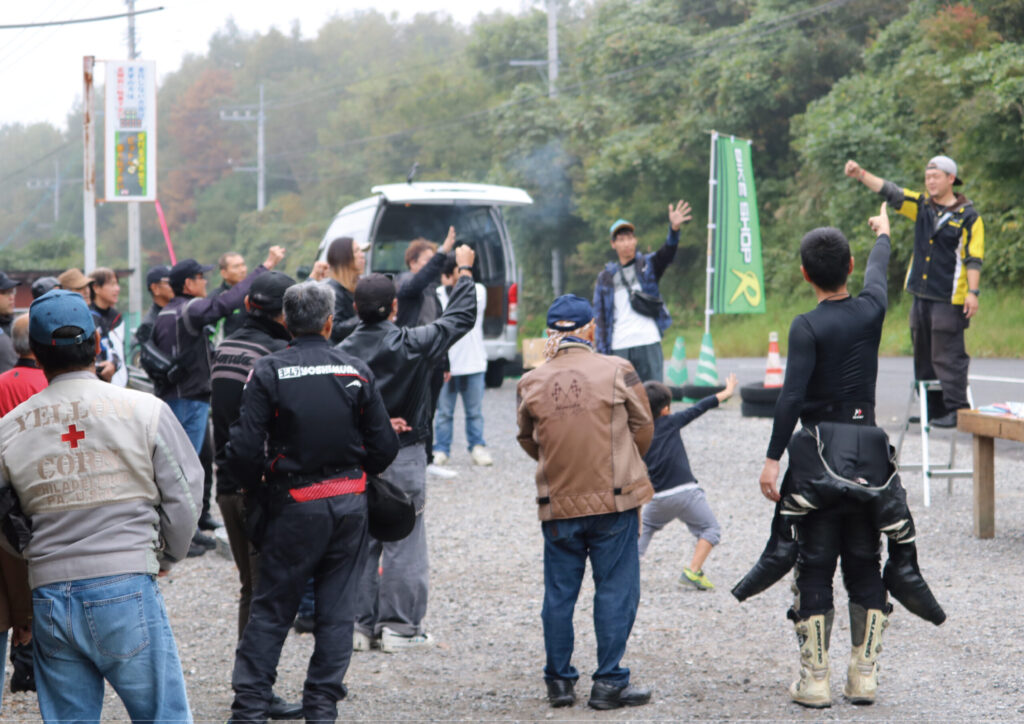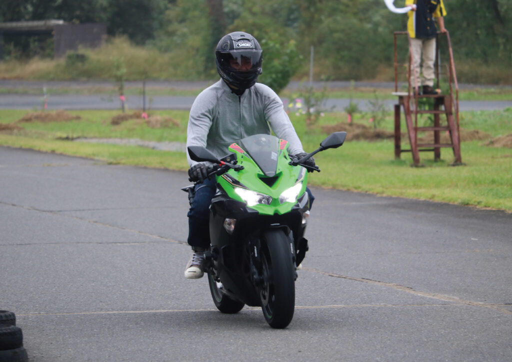 サーキット走行を楽しんだ後は、大会入賞経験もある小野さんグループによるバイクパフォーマンス。