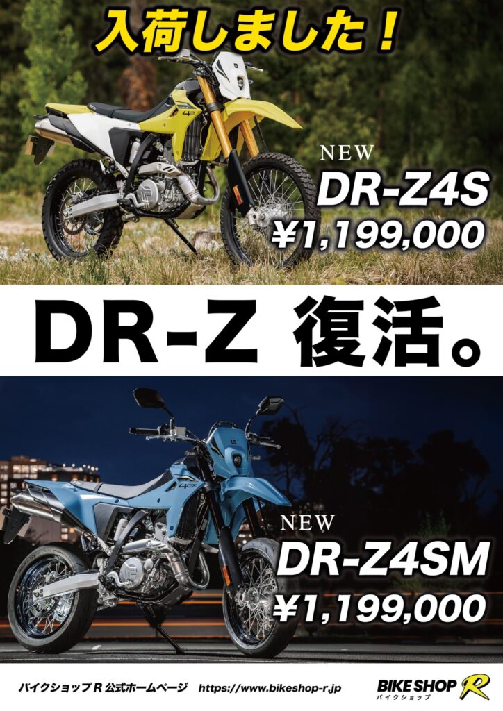 2025/11/01 DR-Z入荷しました! イベント セール スズキより「DR-Z400シリーズ」後継機となるDR-Z4S、DR-Z4SMが発売され、当店でも入荷しました!購入ご希望の方はスタッフまでお問い合わせください。※好評につき完売しました。注文をご希望の方はスタッフまでお問い合わせください。 ページ送り 一覧に戻る 前の記事へ 次の記事へ